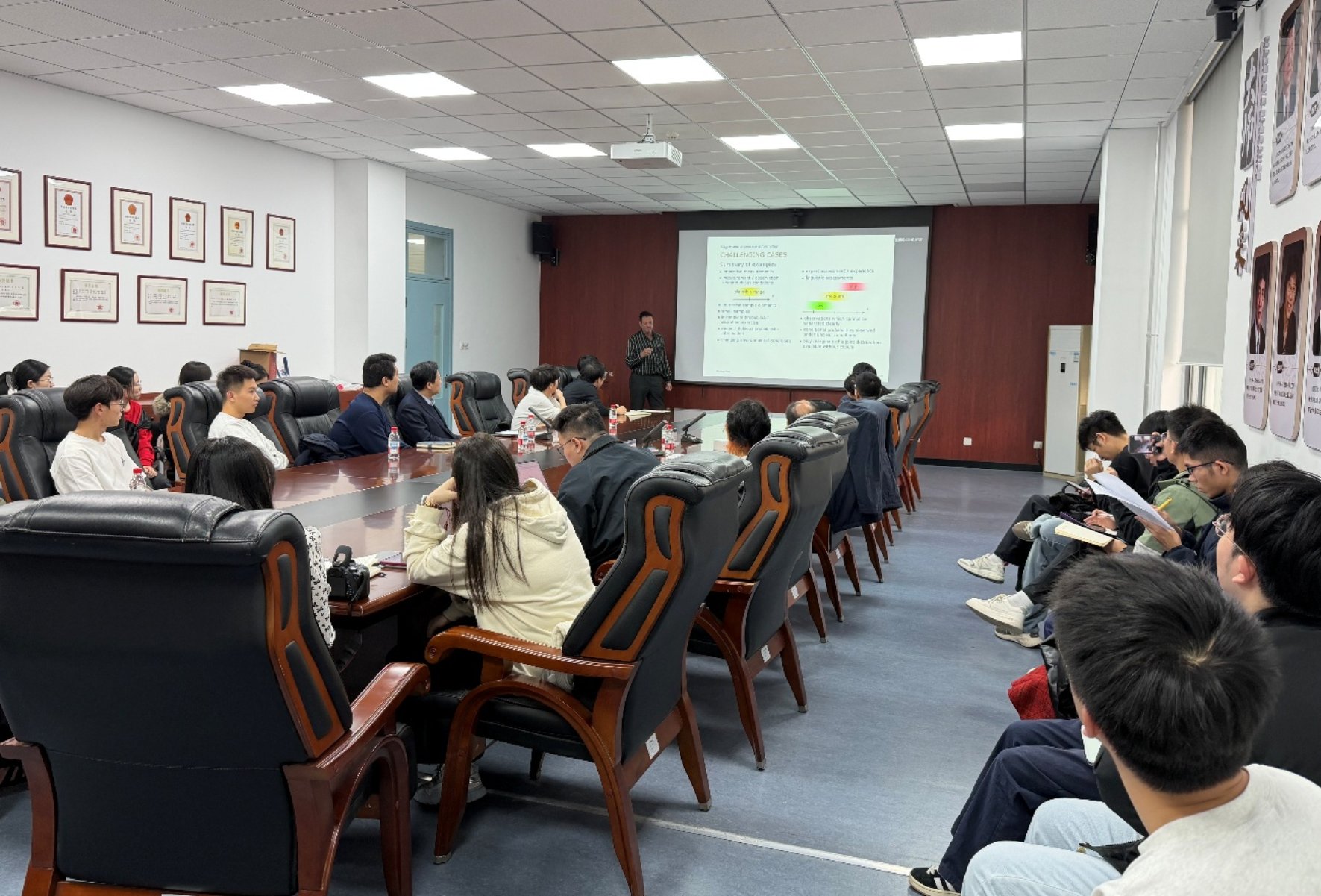 报告前,伊廷华教授与Beer教授进行了友好会谈。双方共同回顾了两团队长期以来在结构健康监测、桥梁智能运维等领域的合作历程与深厚情谊。会谈中,伊廷华教授诚挚邀请Beer教授担任我校即将创刊的国际学术期刊《Smart Civil Infrastructures》的国际顾问编委。Beer教授对此邀请欣然接受,他认为该刊的创办顺应了土木工程智能化的大潮。目前他正担任两本ASCE期刊的主编,愿为期刊的发展贡献自己的经验和力量。